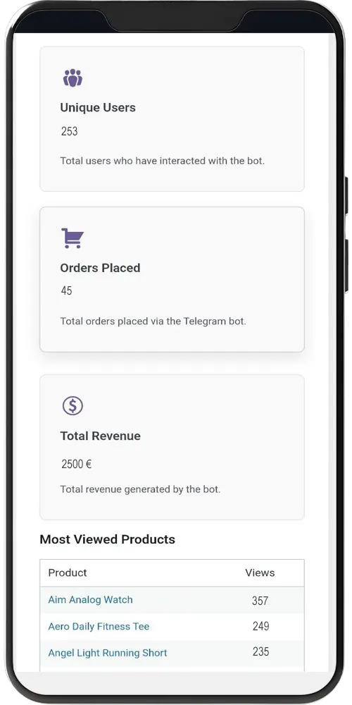 Transformez votre application de messagerie en un puissant canal de vente. Notre plugin crée un bot Telegram entièrement intégré à votre site, vous permettant de mettre en place une boutique WooCommerce sur les réseaux sociaux. Offrez à vos clients une expérience d’achat instantanée et créez un lien direct pour vendre sur Telegram.